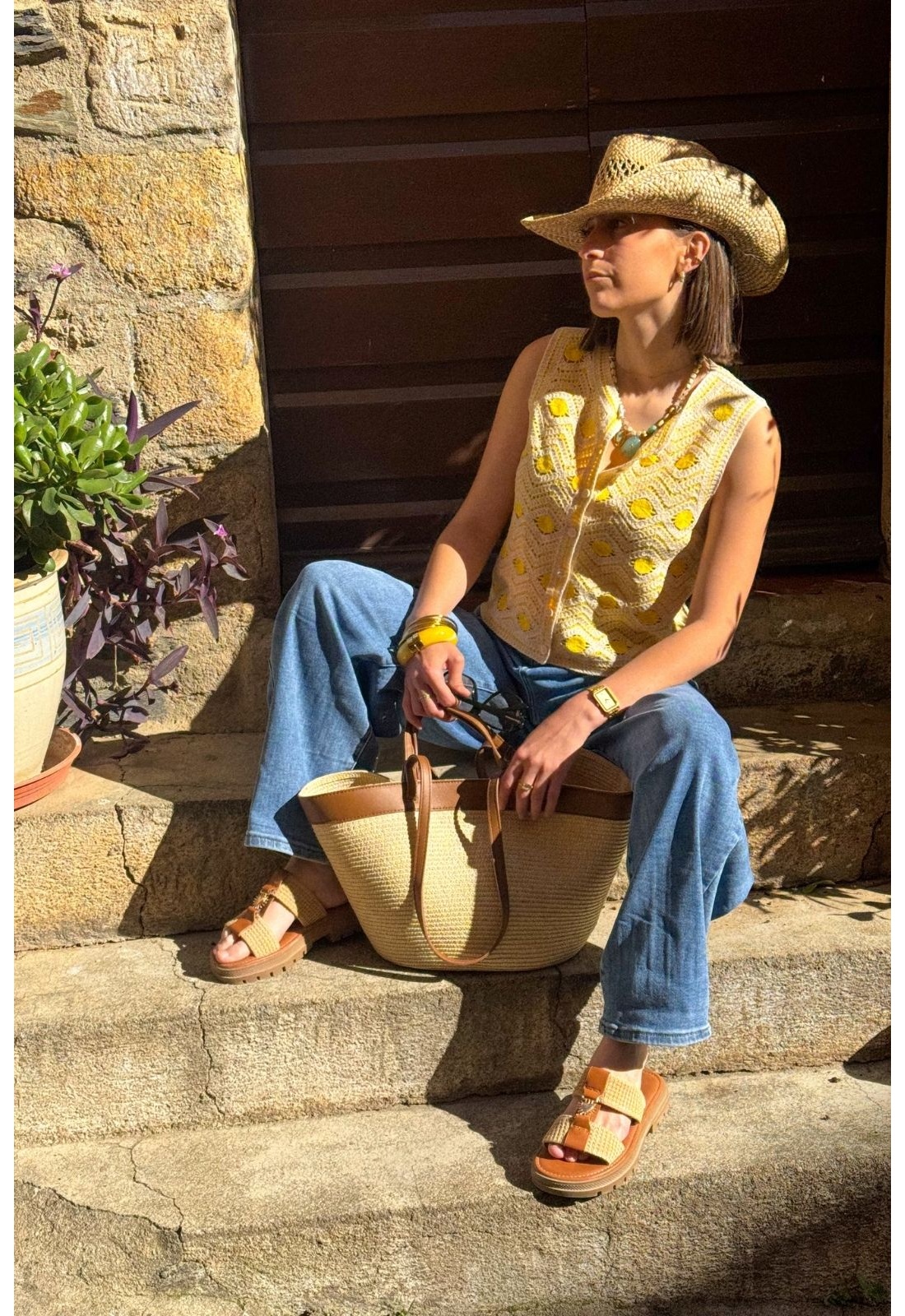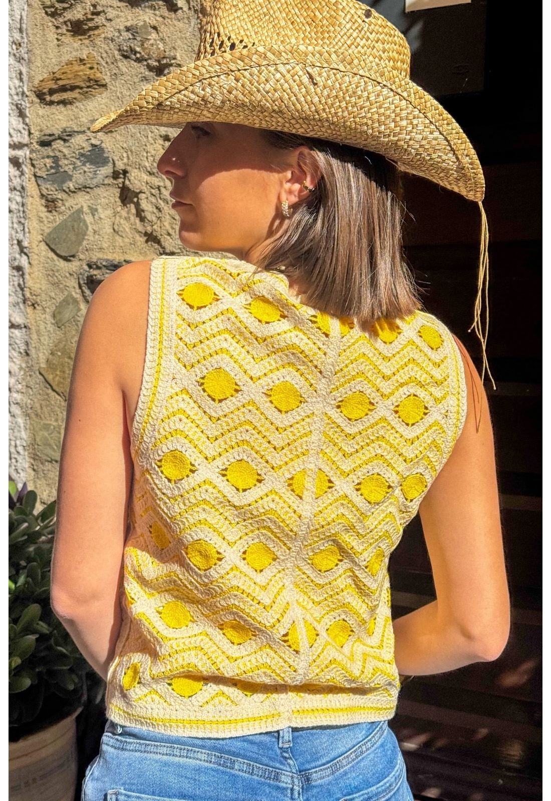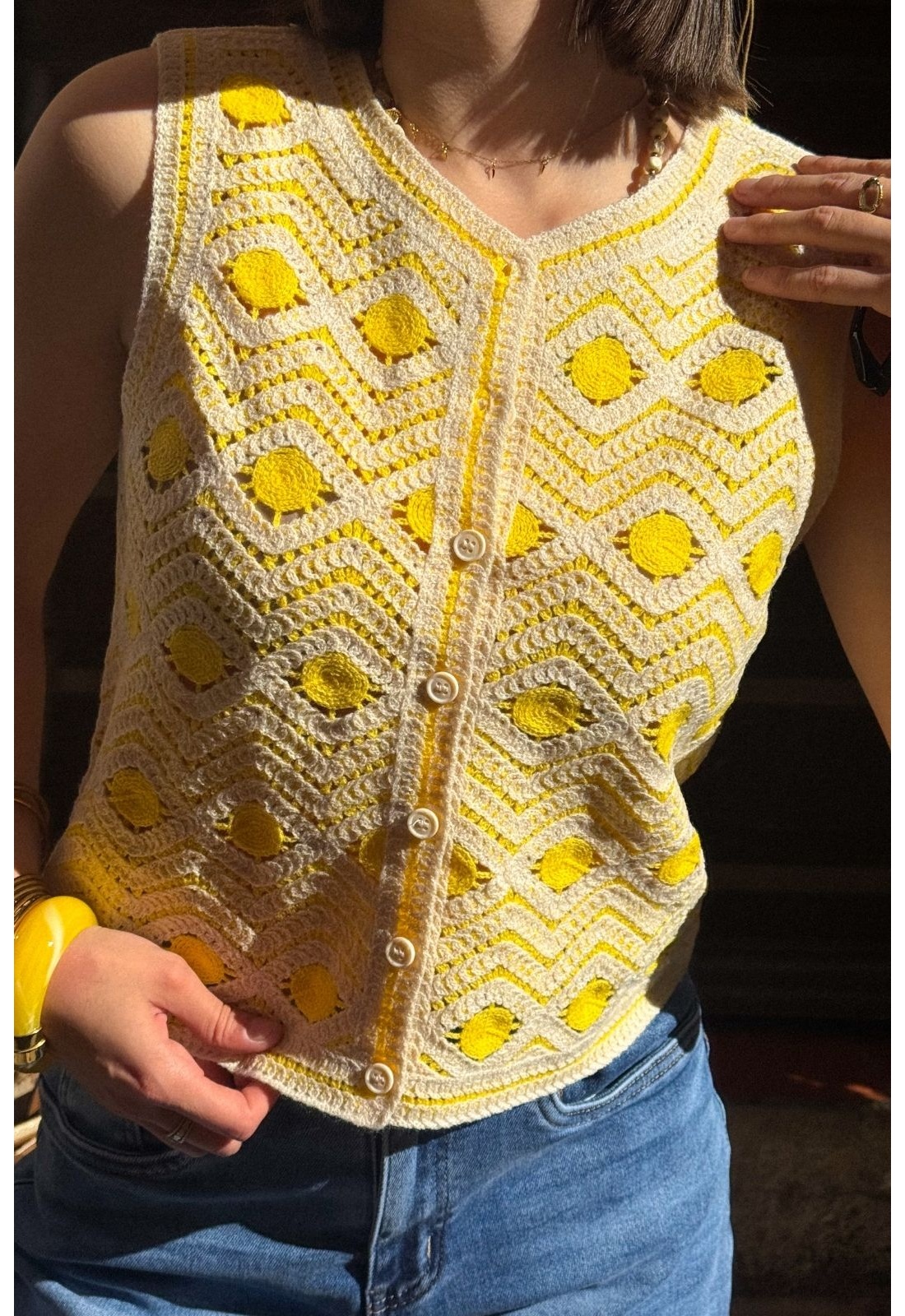 Gilet Macramé Jaune VISANDEA