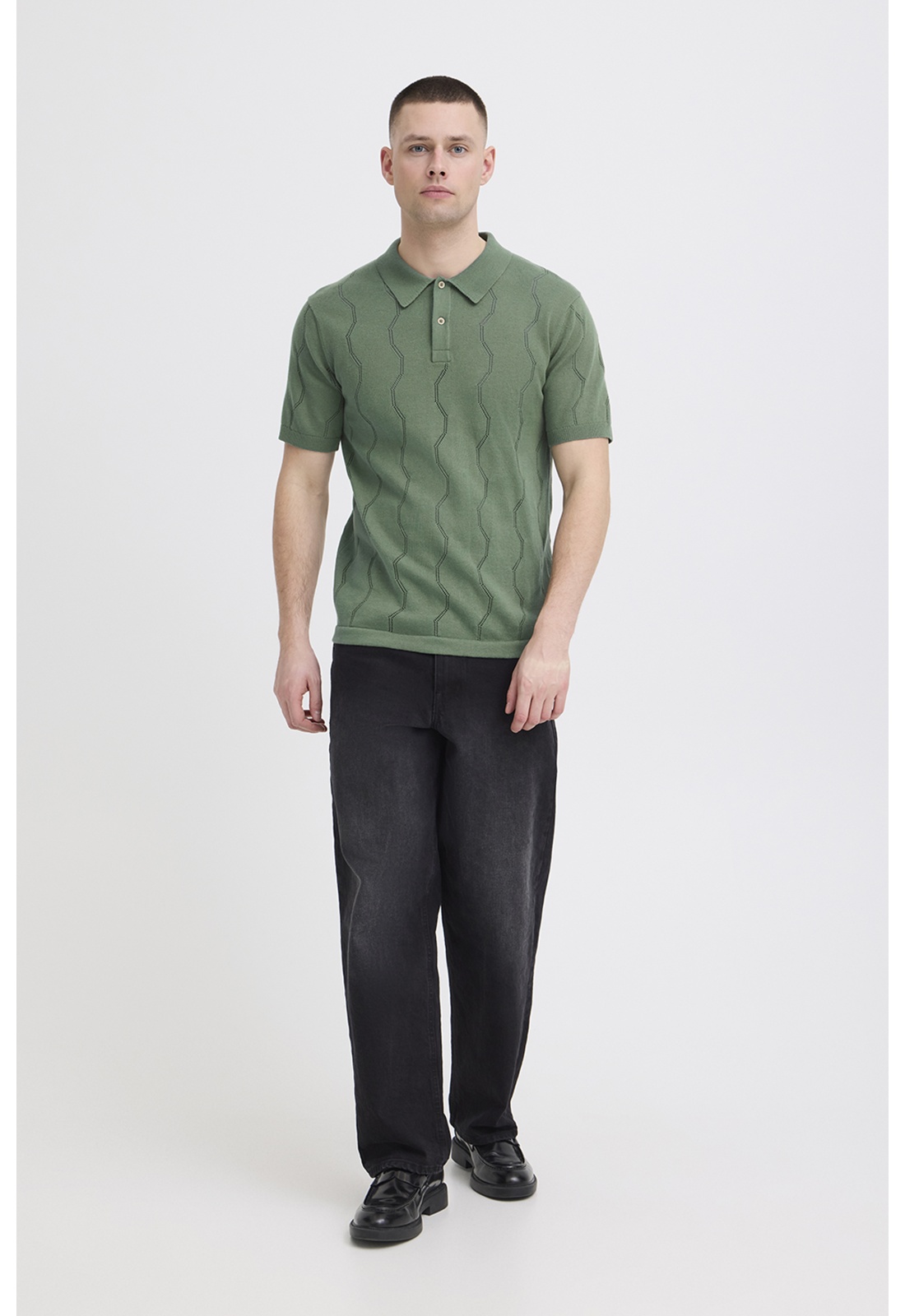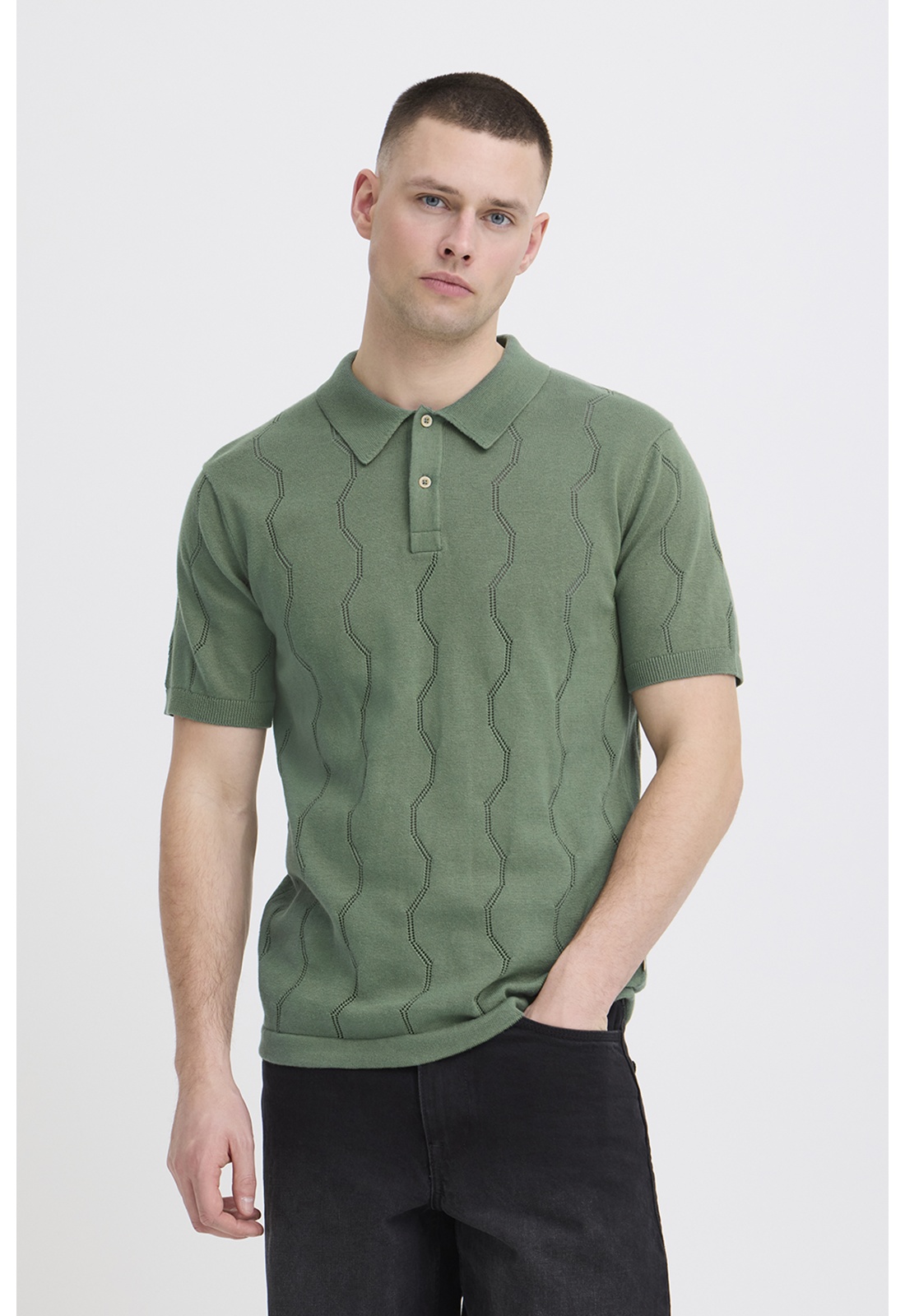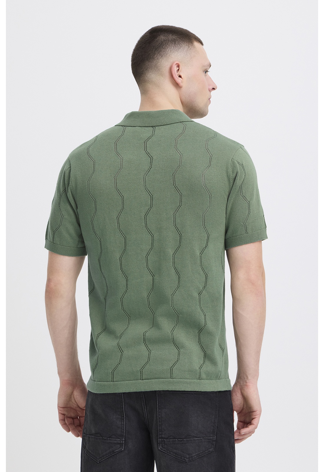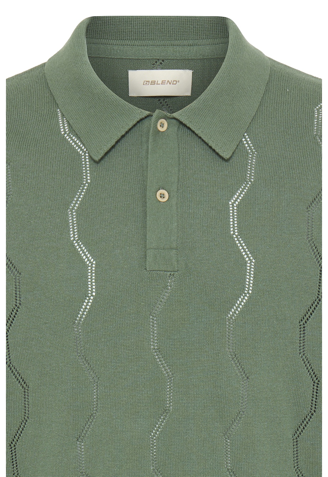Polo kaki en maille ajouréCol à reversManches courtesBoutons beige au col