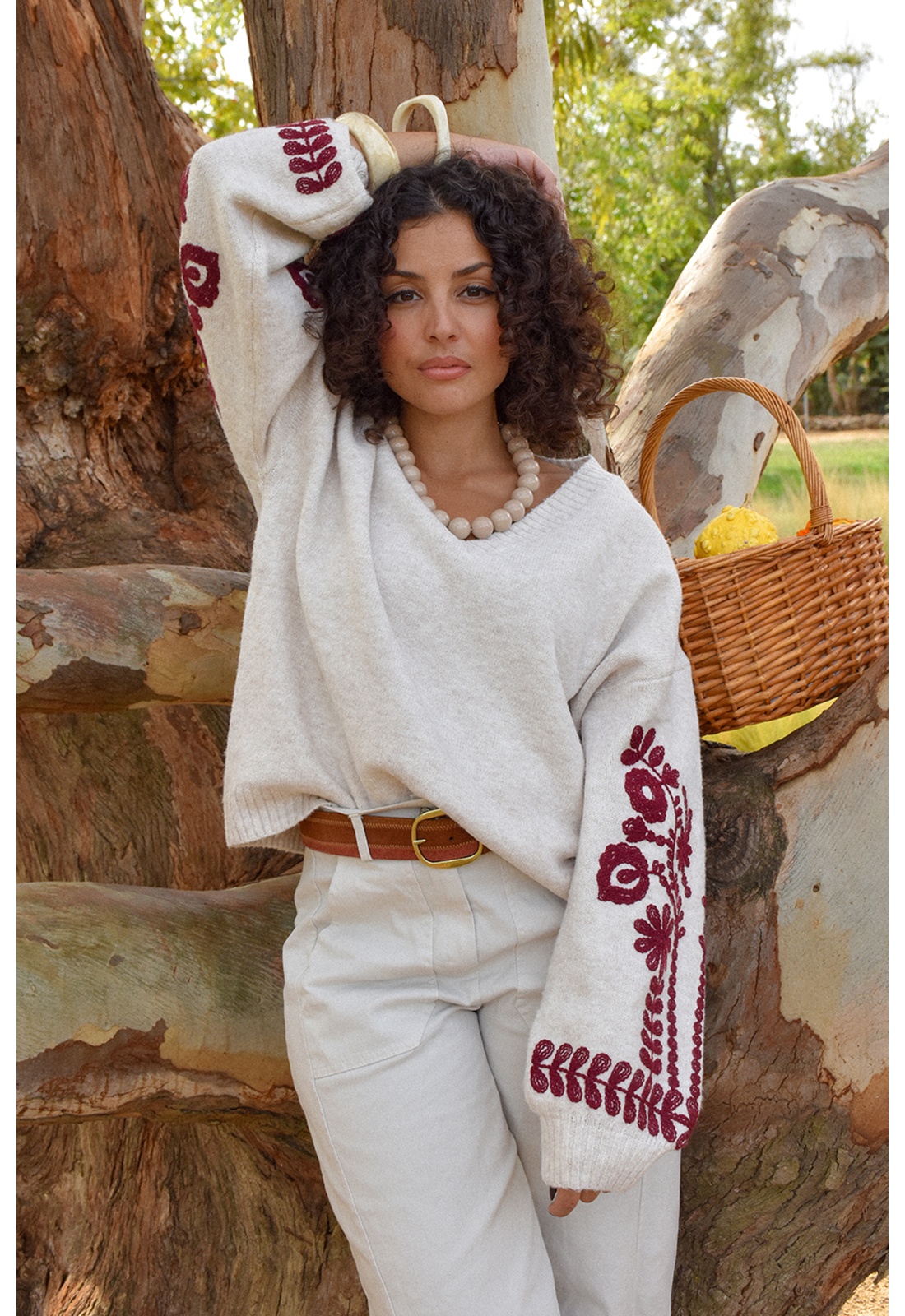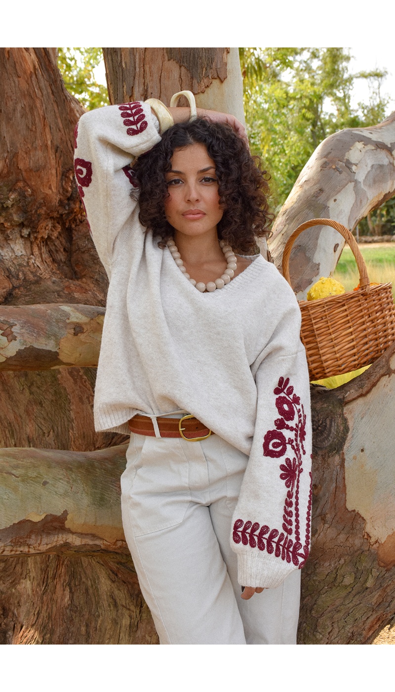 Pull Brodé Ecru EMMA
