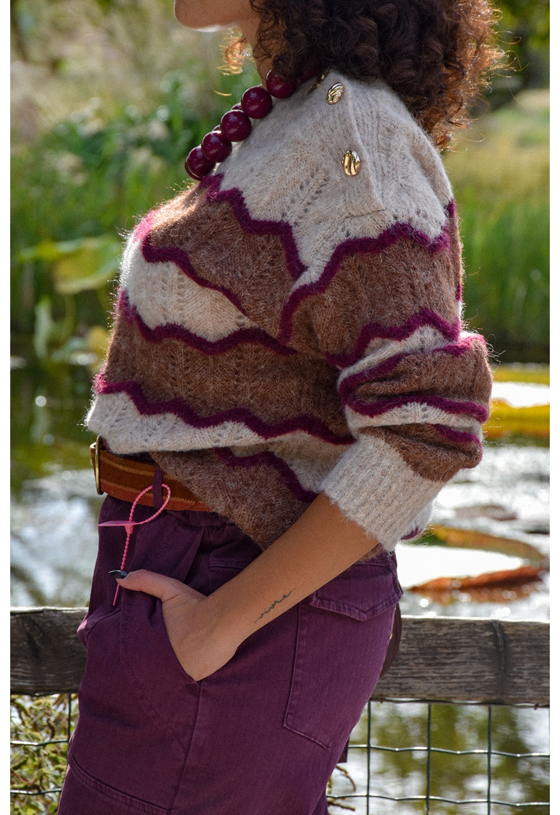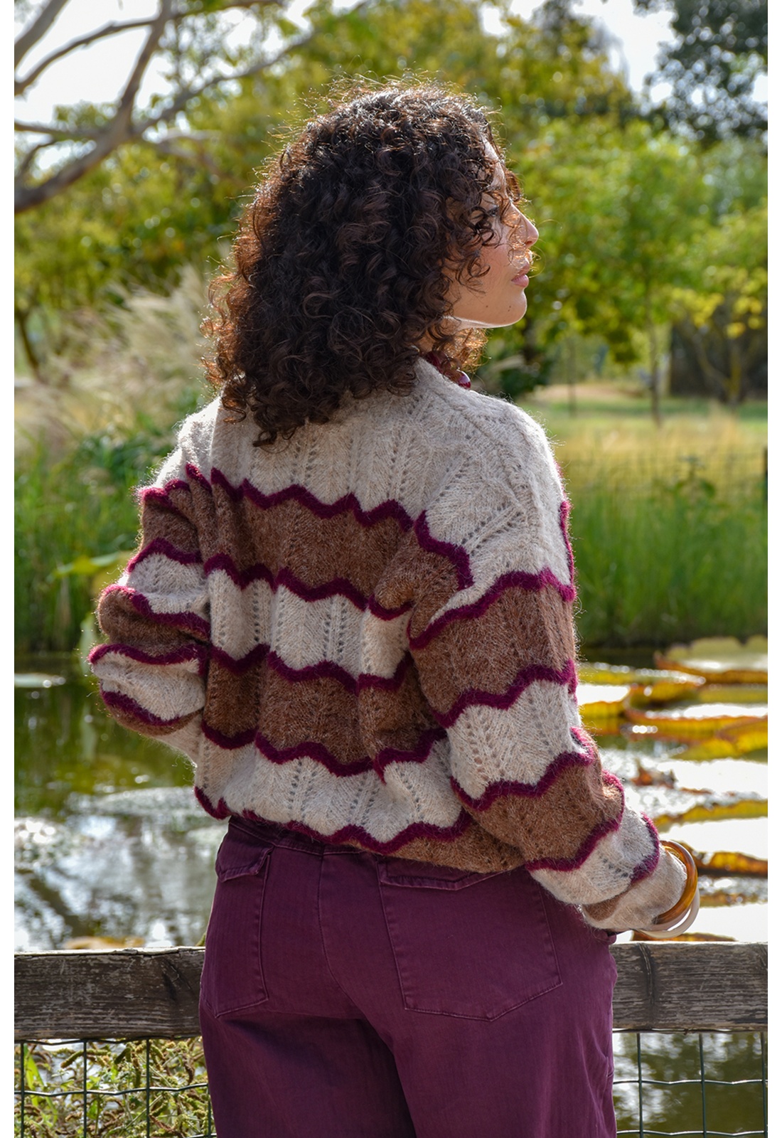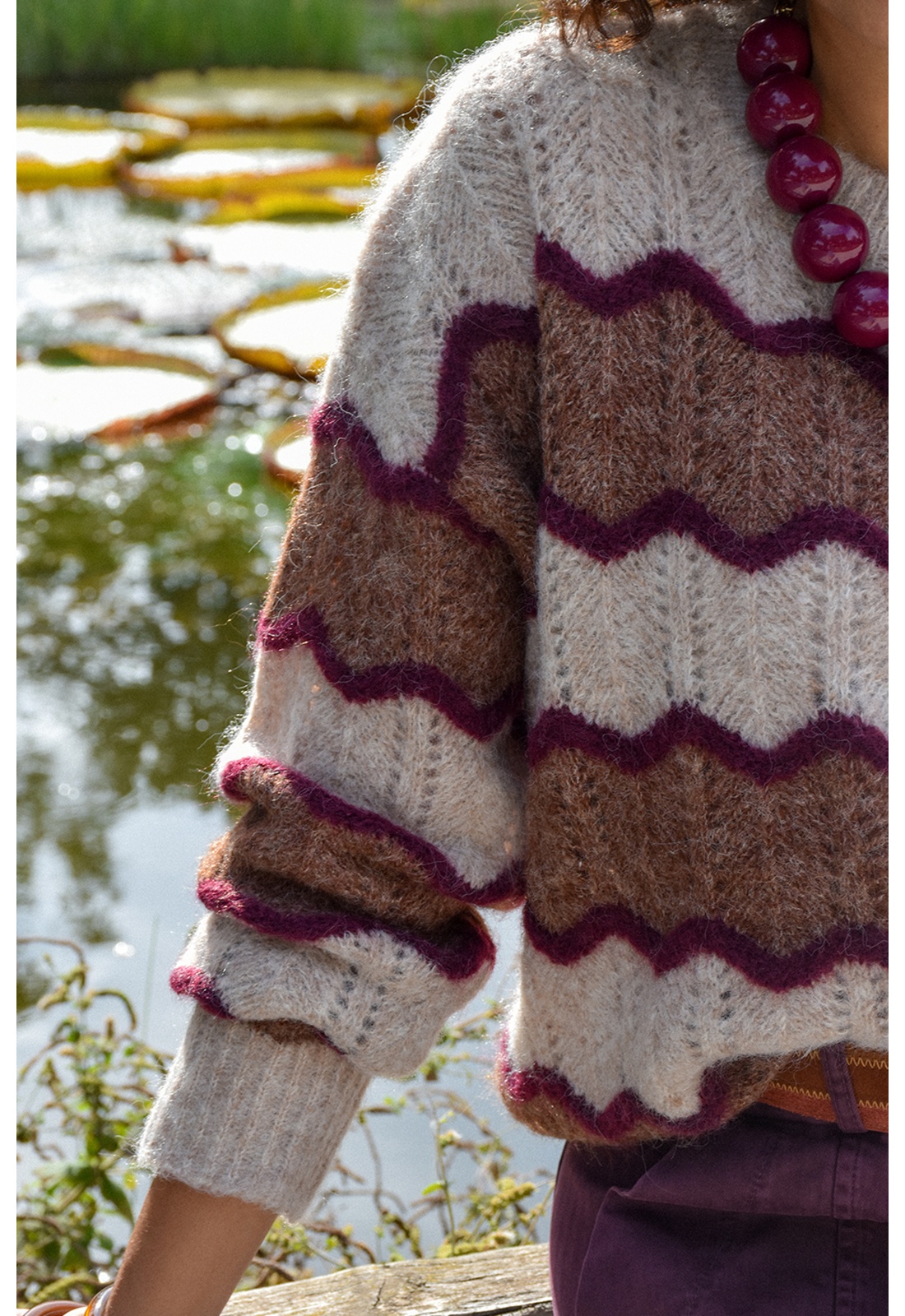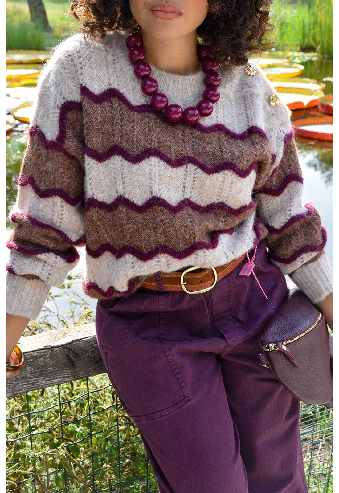 A rayures bordeaux et camel.