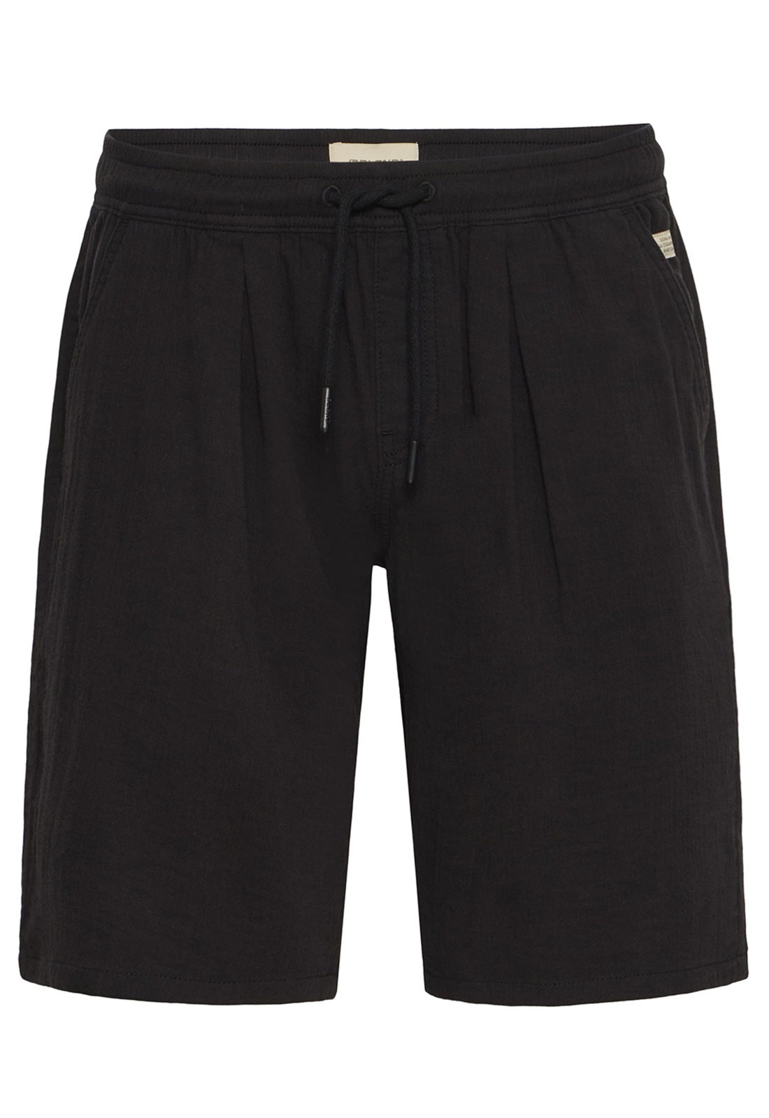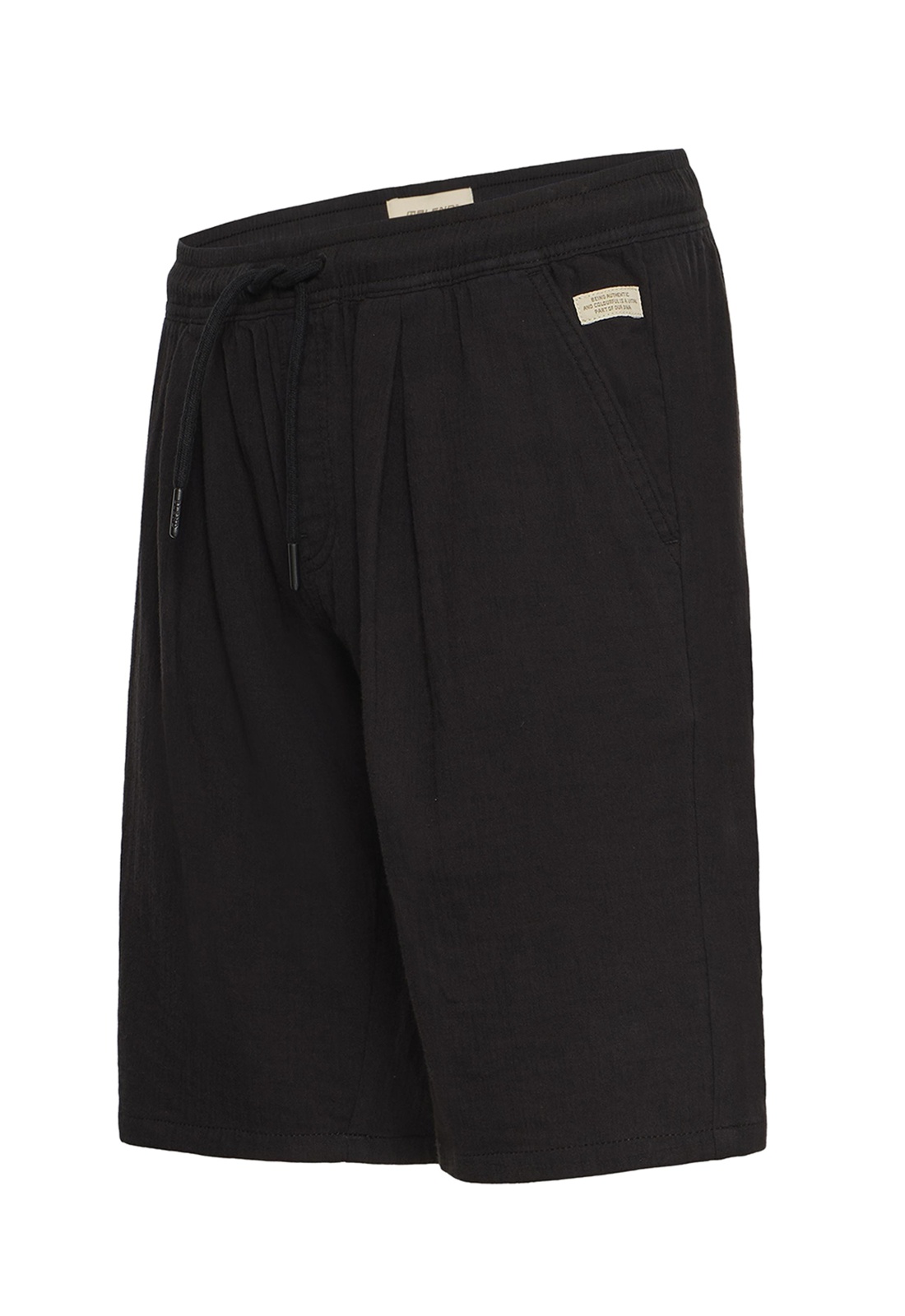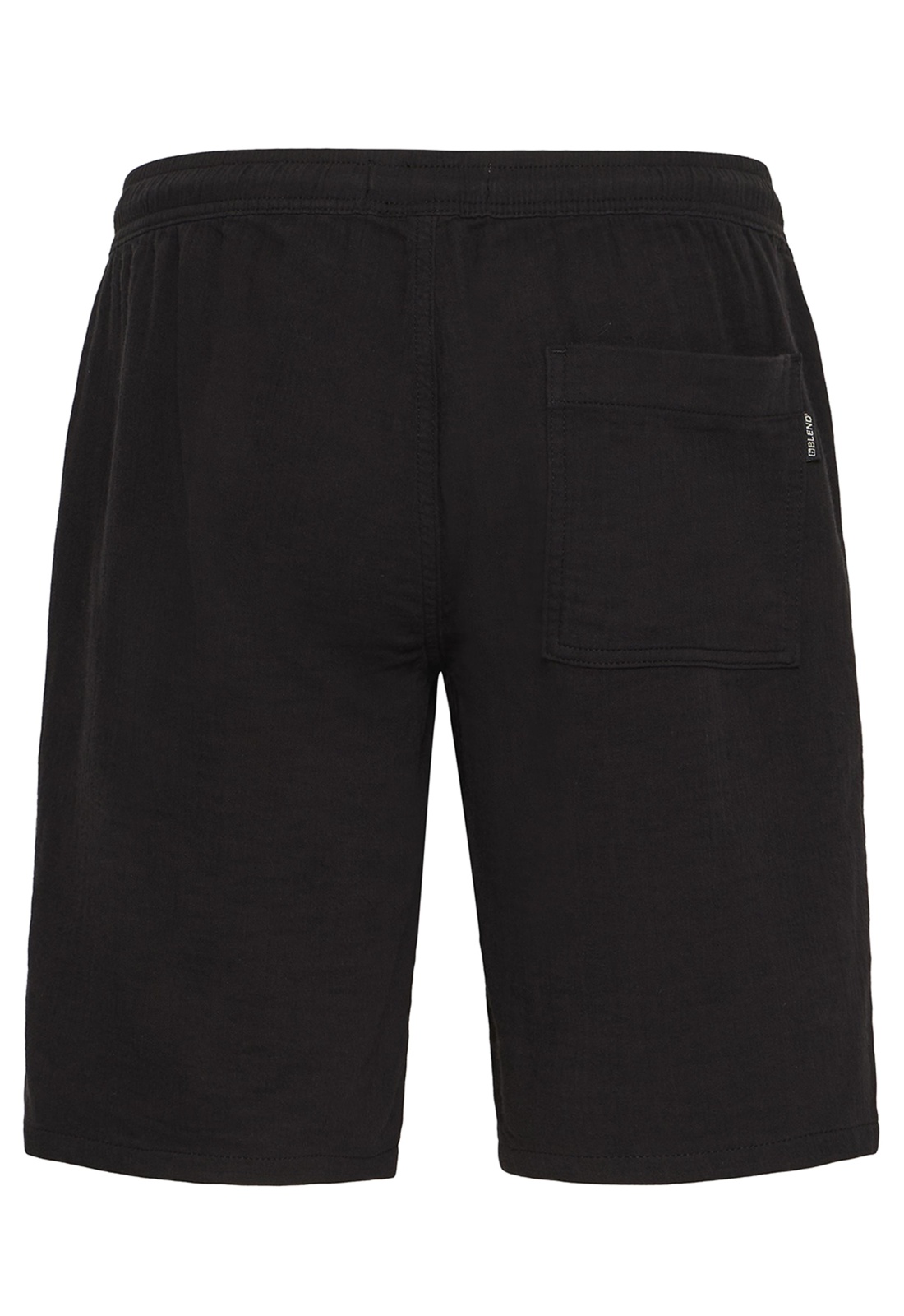 Short noirFermeture avec cordon de serrageTaille élastiquéeDeux poches passepoilées.Deux poches plaquées arrière
