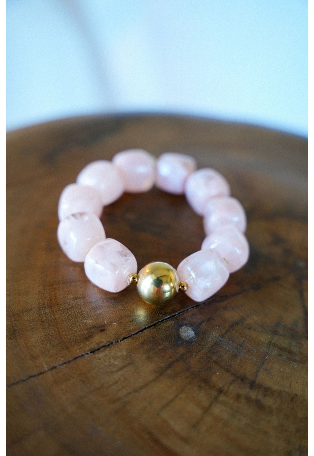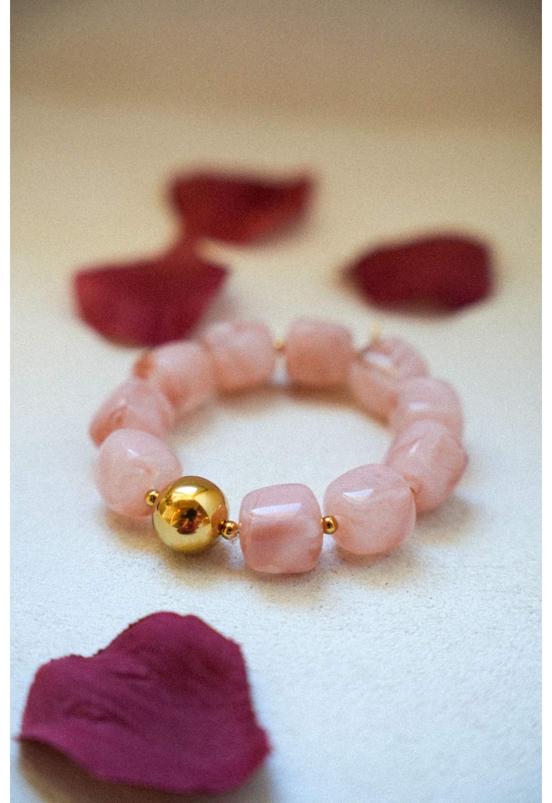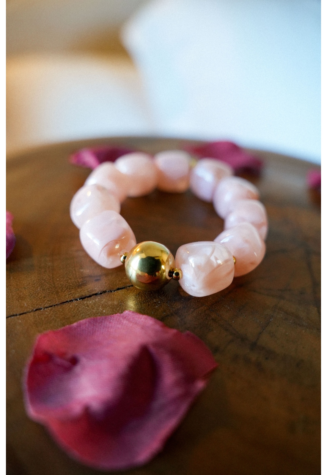 Bracelet pour femmes.En perle.Avec effet marbré.De couleur roseet doré.Il est élastique.