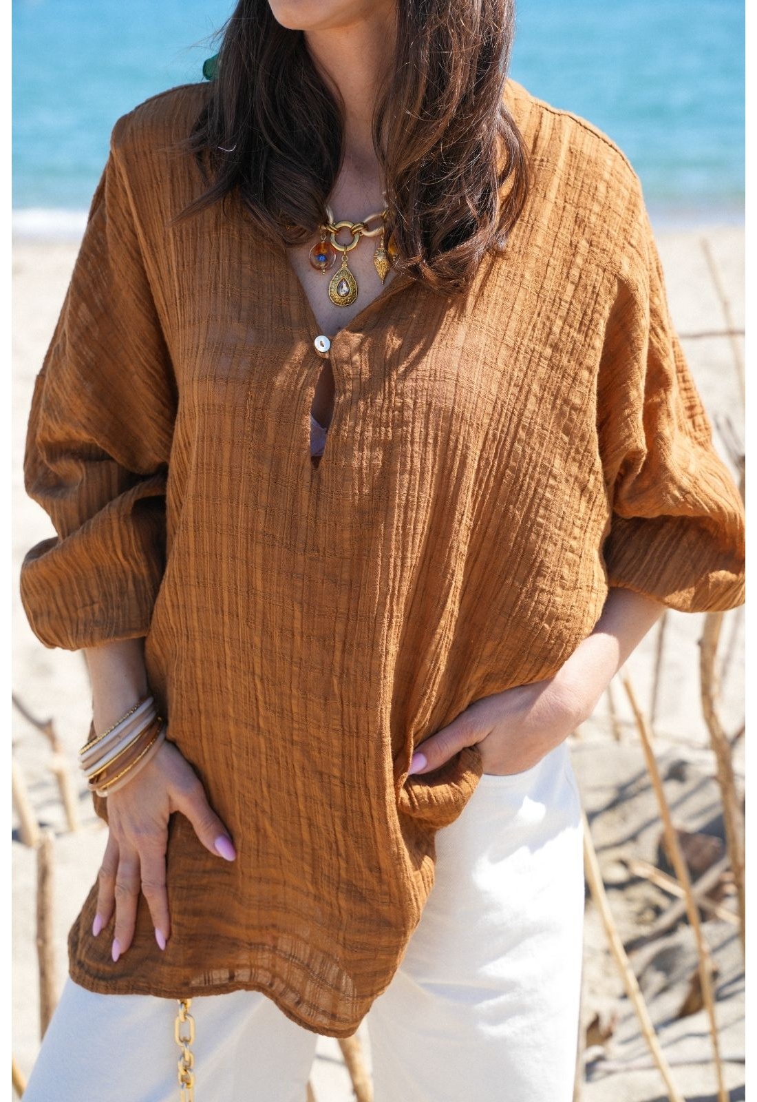 Adopt an effortless style with the Fluid Pink WASP Blouse . This beautifully draped blouse offers a relaxed, comfortable fit, perfect for transitioning from season to season. Its flowing fabric and delicate pink hue create a feminine and sophisticated look that you will love.