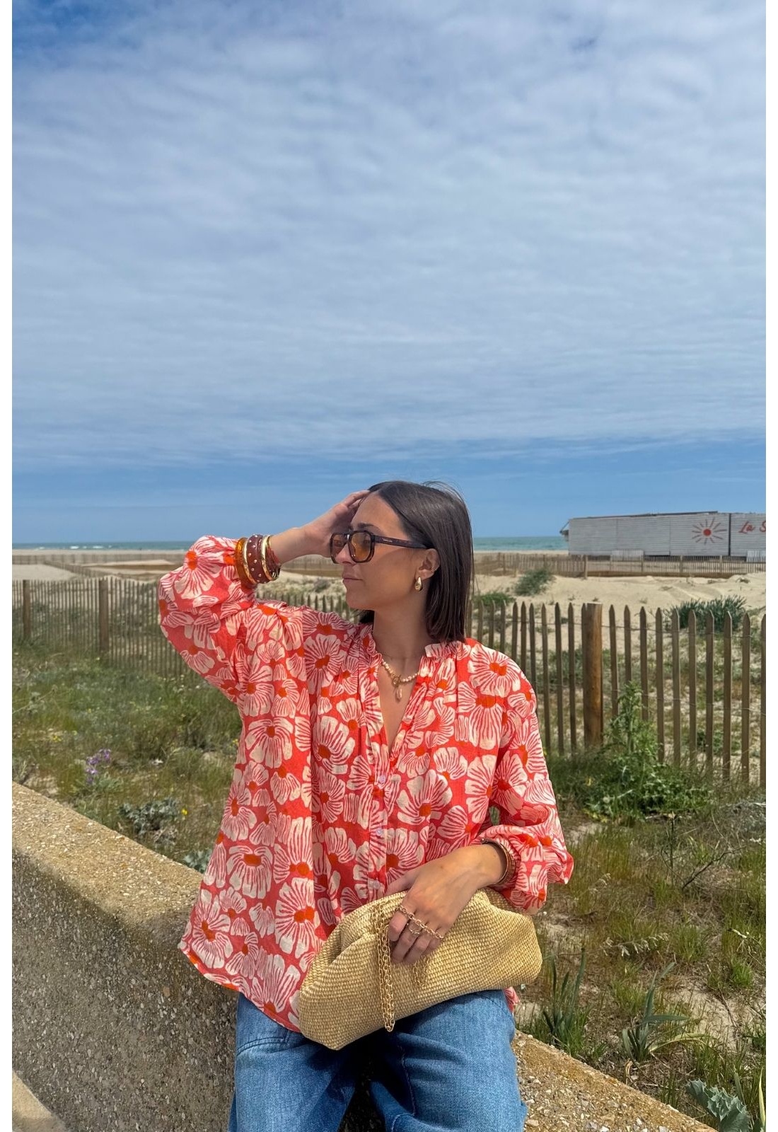 Salmon Flowers Blouse CAMERON
