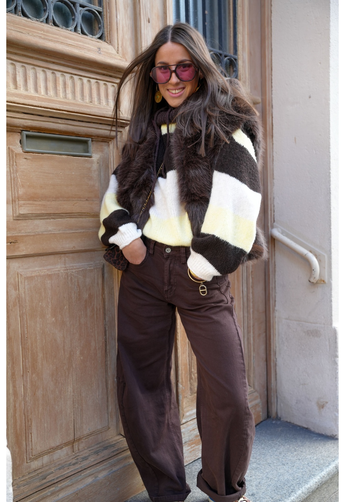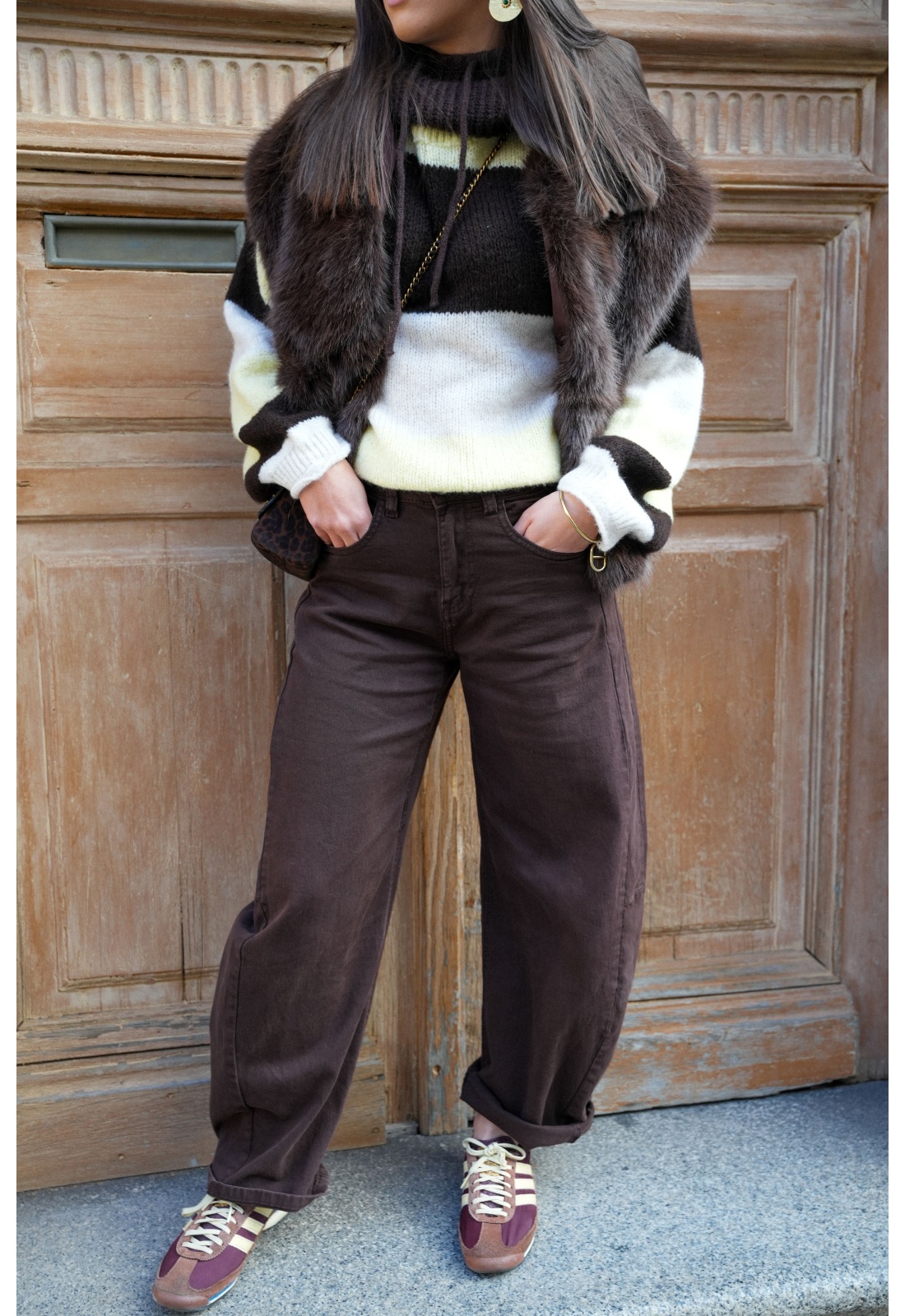 3d denim JEAN MARRON PANTALON FEMME