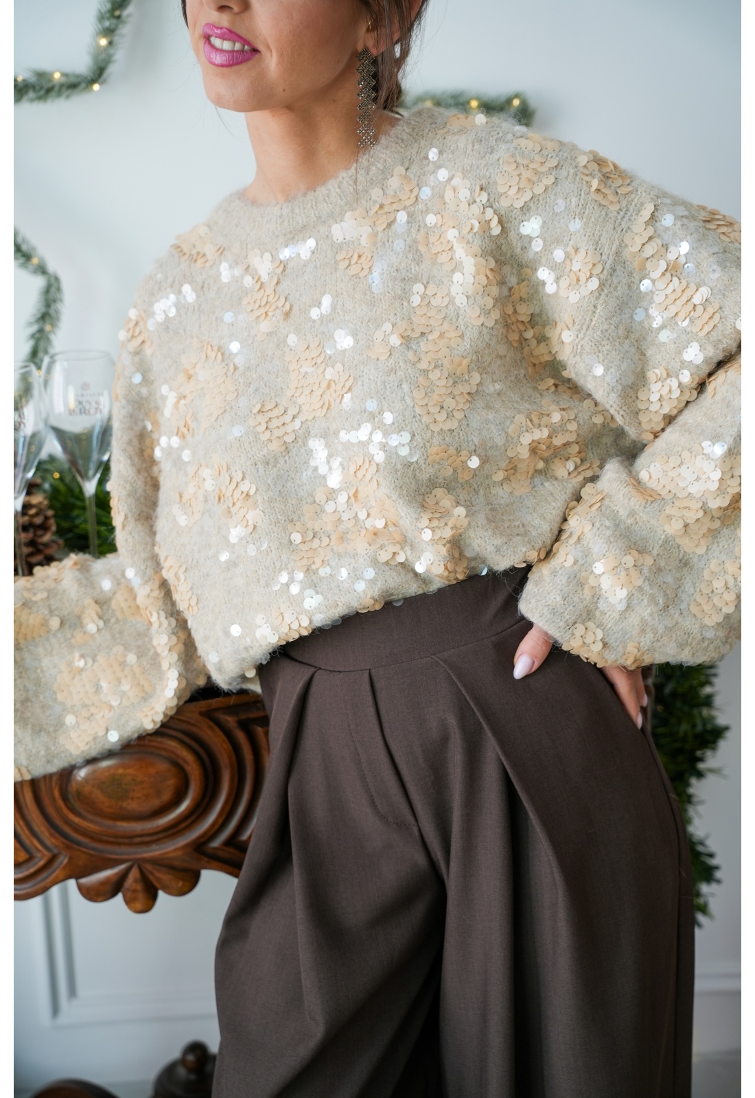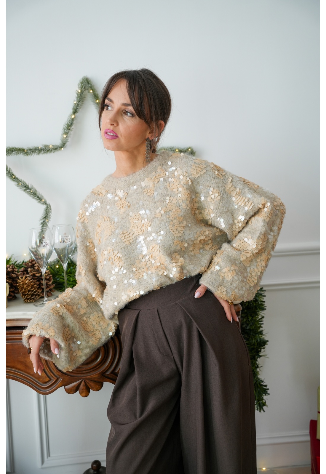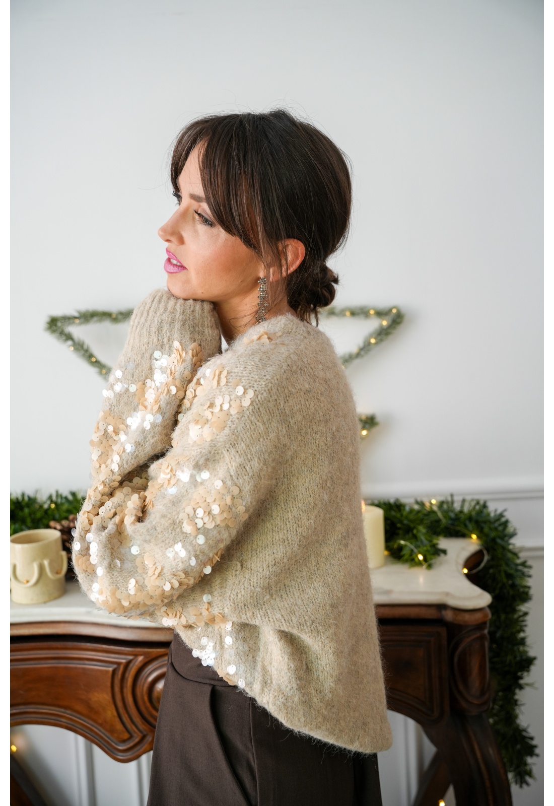 FUTUR FASHION SEQUIN BEIGE PULL FEMME