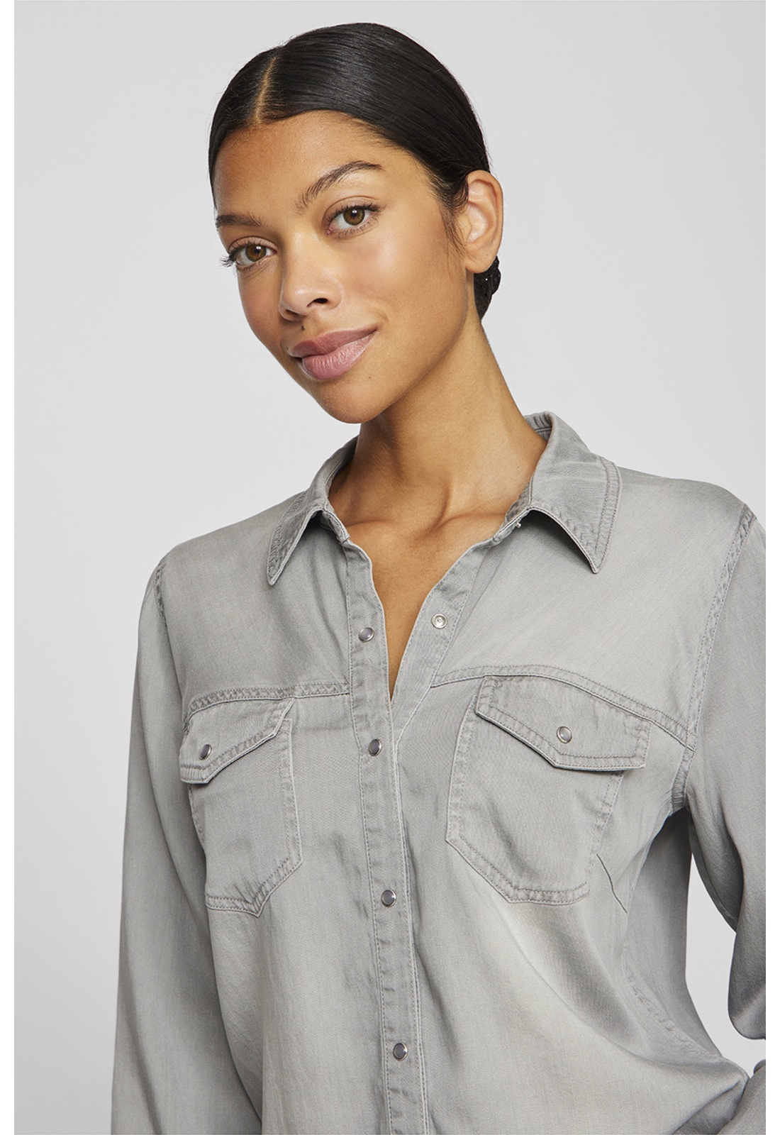 Camicia in DENIM GRIGIO CHIARO Colletto a camicia Maniche lunghe Chiusura con bottoni Tasca sul petto Taglio regular fit Composizione: 70% TENCEL™ Lyocell, 30% Cotone - Organico