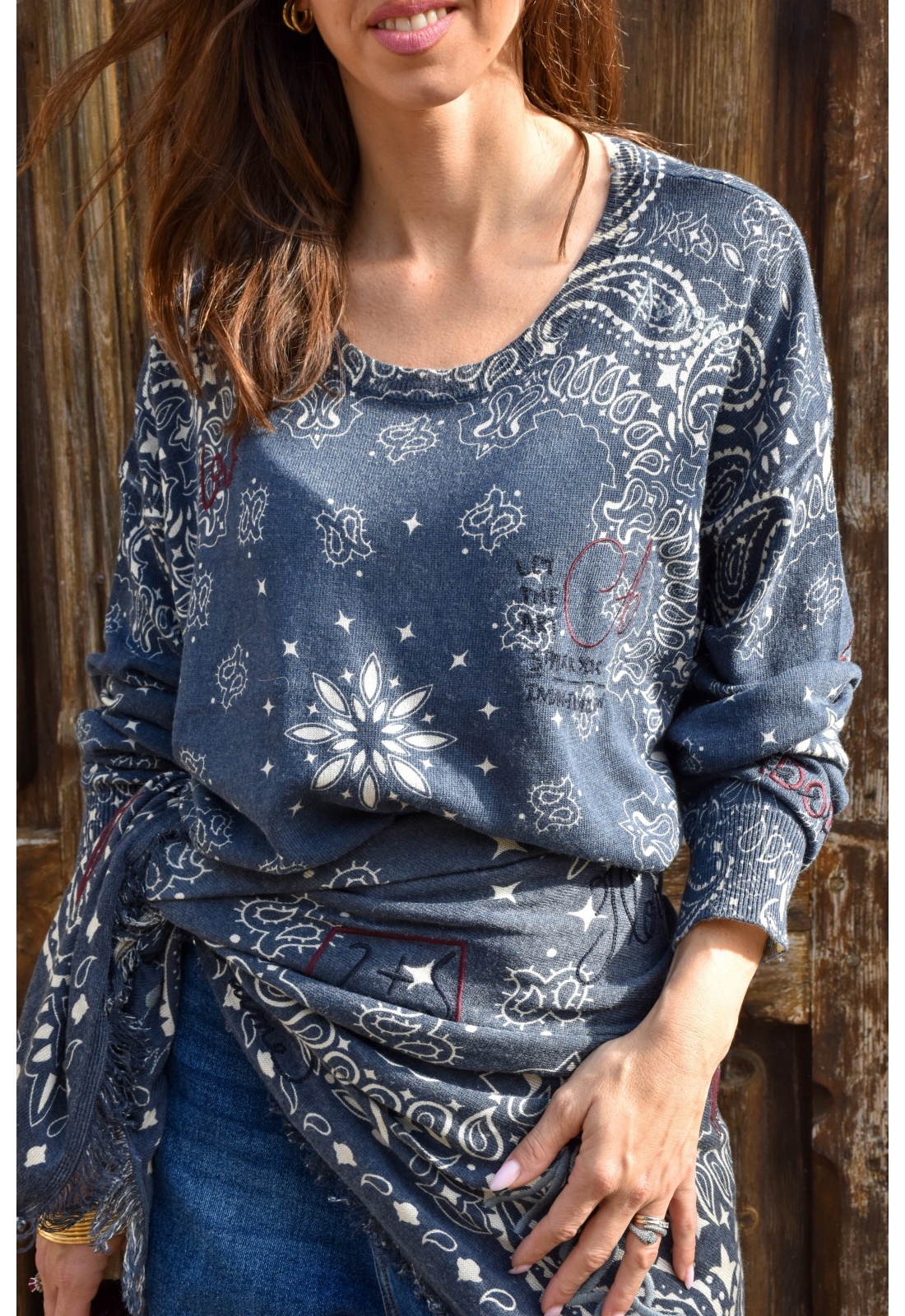 DE FIL EN AIGUILLE ECRU MARINE PULL FEMME
