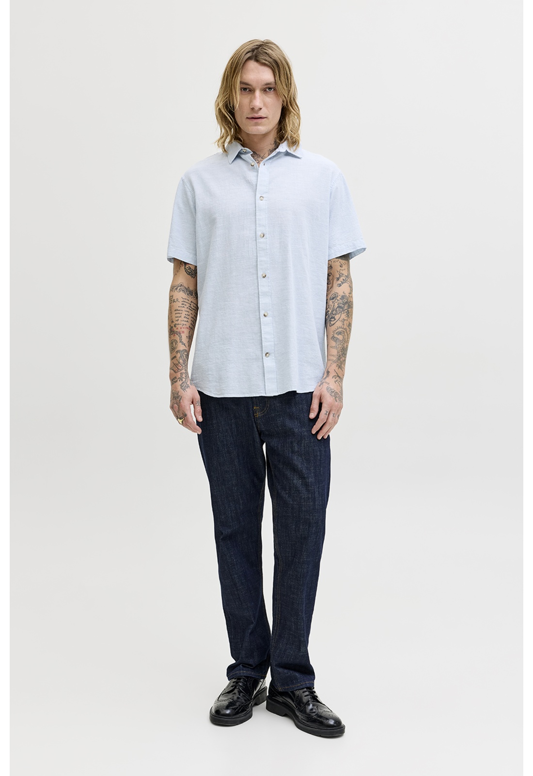 Camicia in lino blu celeste JJESUMMER
