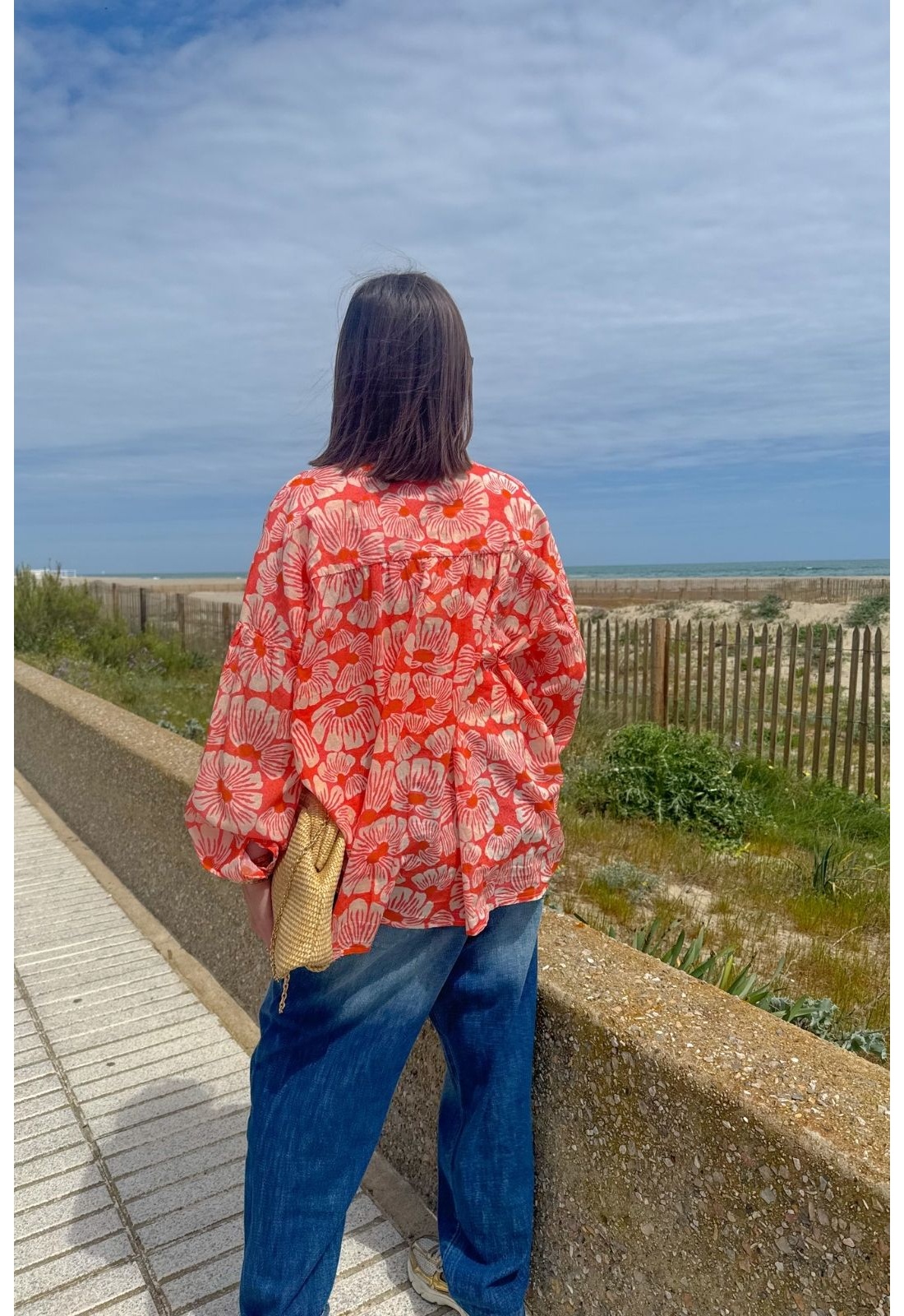 Vous ne trouverez pas plus légère que la blouse Mirabola de chez banditas, un doux mélange entre imprimé et texture vaporeuse.